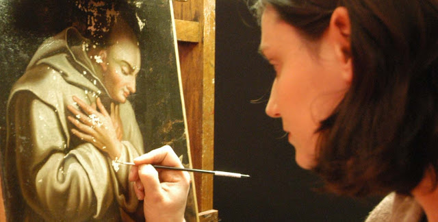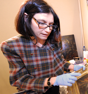 Catherine Bernard exerce la restauration de tableaux depuis 1993.
