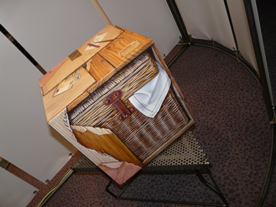 Ses peintures murales en trompe-l'oeil pour l'intérieur ou l'extérieur sont principalement réalisées en atelier sur des panneaux très minces et mis en place ensuite.